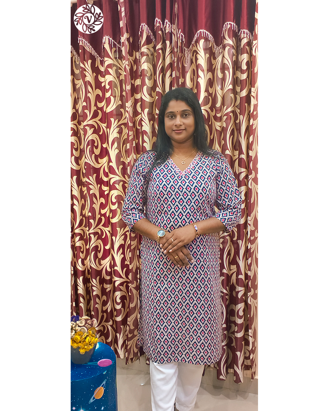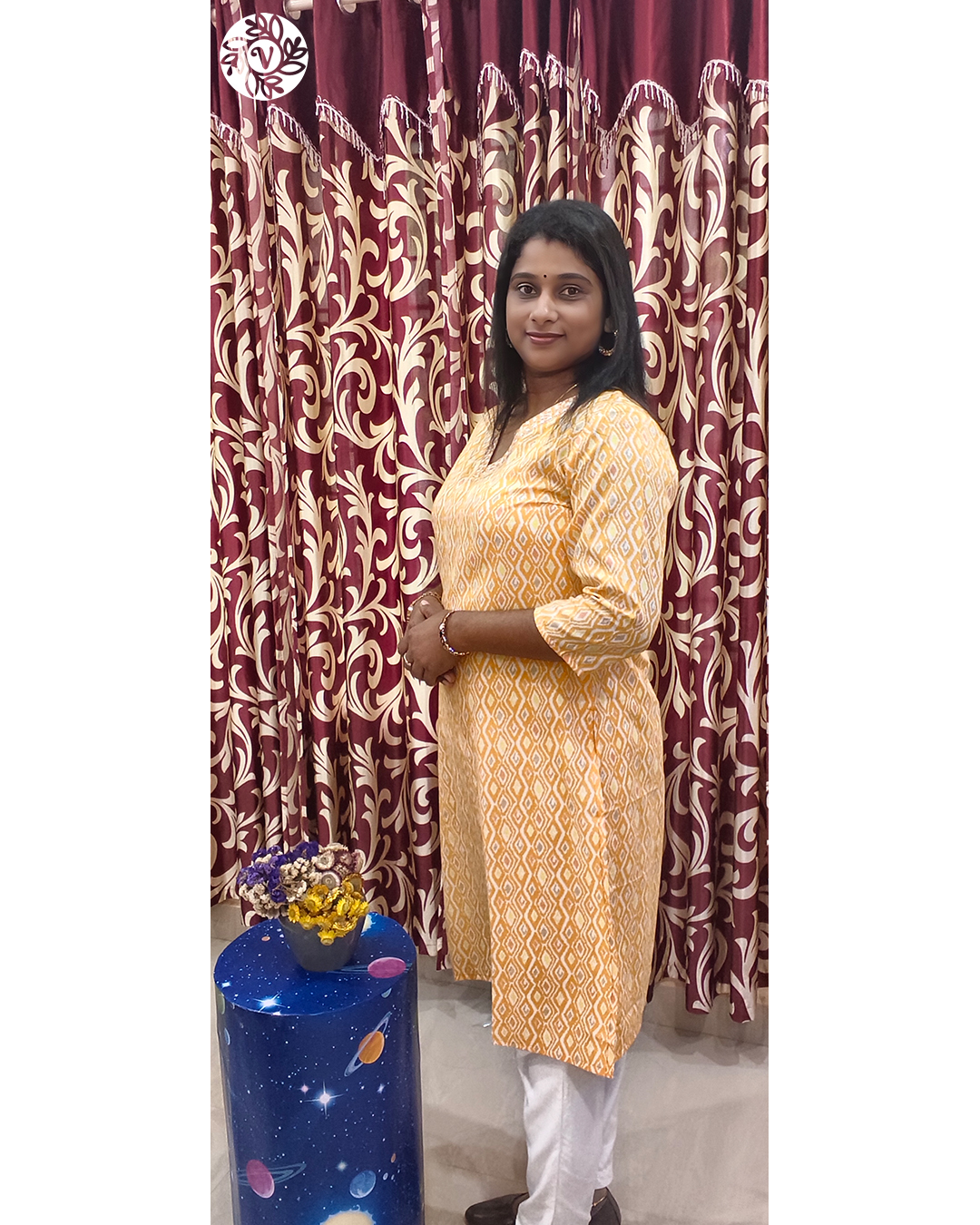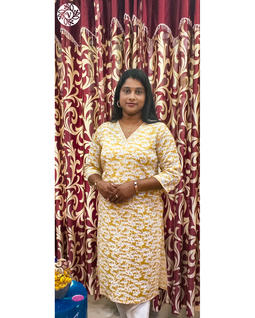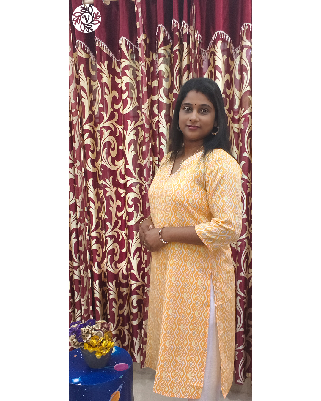 Use Navy Blue or Blue for office hours in Kochi or meetings around Ernakulam—pair with beige or black straight pants for a crisp look. Choose Turquoise Blue for brunches and café plans in Thiruvananthapuram or Alappuzha, and go Yellow for cheerful gatherings in Thrissur or Palakkad. The Pink printed piece is lovely for casual photos, reels, and family visits in Kozhikode, Kollam, or Kottayam—the colour reads bright without feeling loud. All variants pack flat, steam quickly after travel or rain, and pair well with sandals or flats—great for short trips across Kannur and beyond. One base, many moods: the same kurti moves from errands to evenings with just a dupatta and a change of shoes.