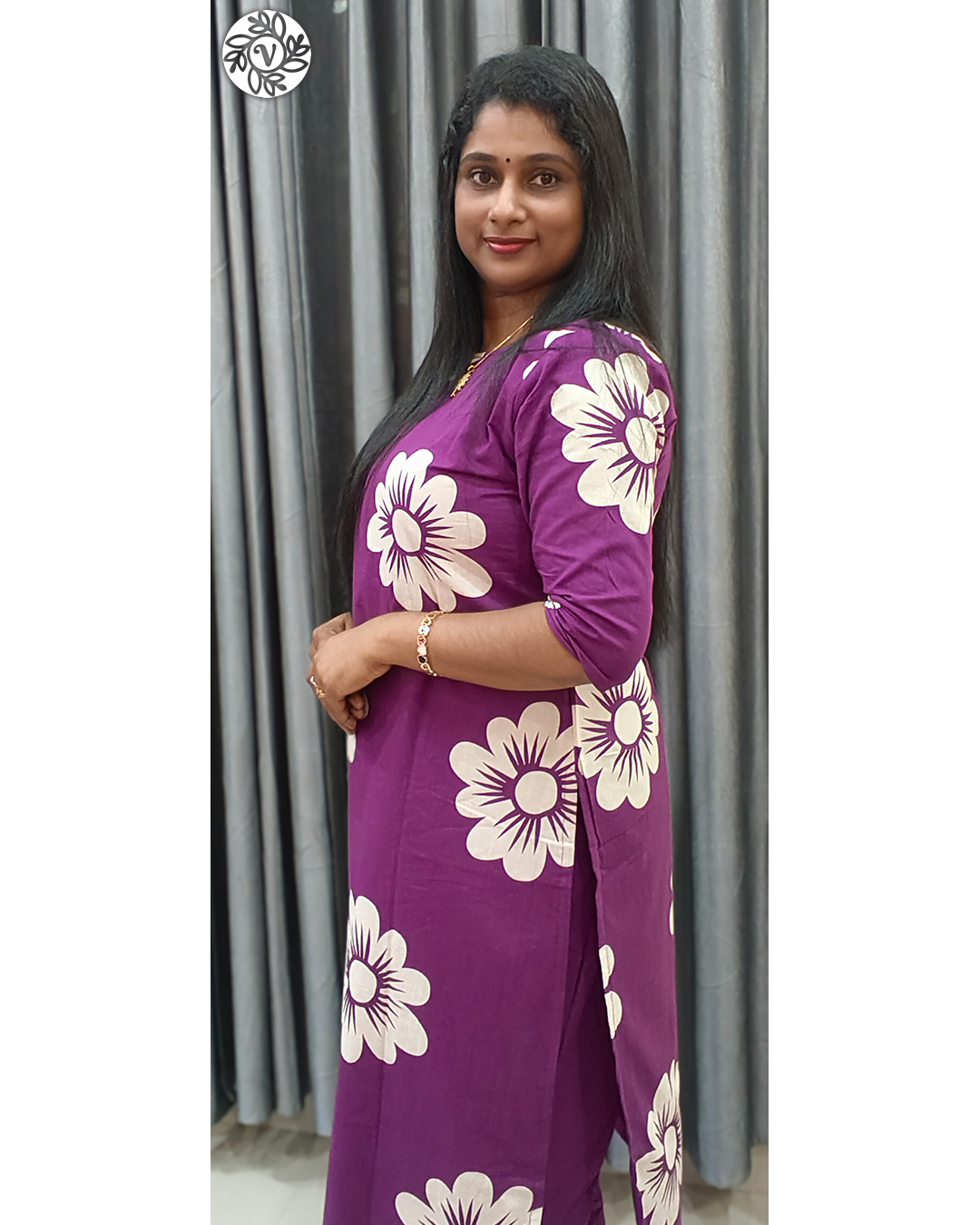 Wear Royal Blue (VB 5297) for Kochi office hours or Ernakulam meetings with flats and minimal jewellery—it reads professional all day. Choose Wine (VB 5293) with its big floral print for brunches in Thiruvananthapuram, family visits in Palakkad, or festive-light evenings in Thrissur—add small hoops and block heels for instant lift. Planning café time and photos in Kozhikode or short trips across Kollam, Alappuzha, and Kottayam? Both sets pack flat and steam quickly after monsoon moisture. One listing, two easy moods—switch colour to match your plan and keep accessories simple.
