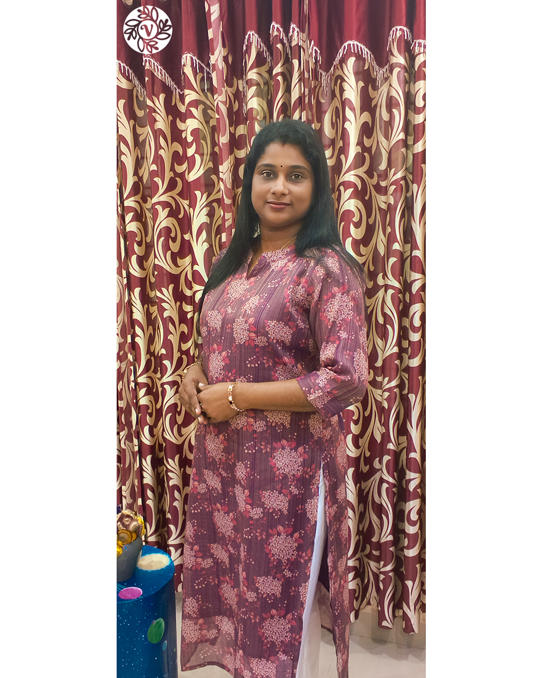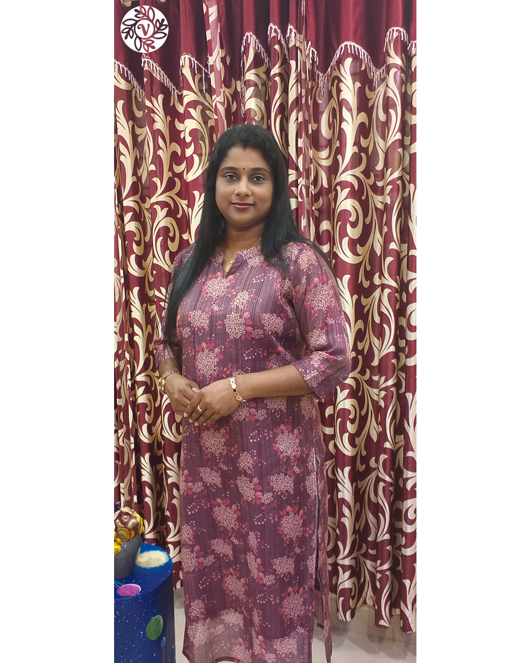 Wear VB 5059 to Kochi offices with minimal jewellery and flats for a neat, professional mood. For Thrissur dinners or family meets in Palakkad, switch to block heels and add a slim bracelet or earrings—the tissue sheen lifts the look instantly. Planning café time in Thiruvananthapuram or short trips across Ernakulam, Kollam, or Alappuzha? The set packs flat and steams quickly after monsoon moisture. For relaxed outings in Kozhikode and Kottayam, keep accessories simple and let the Dark Purple tone do the work. One coordinated set, many easy moments—desk to dinner in minutes.